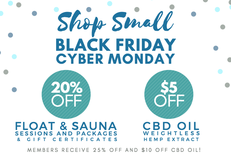 This month at Weightless Float Center we are participating in Shop Small Louisville with great deals for Black Friday, Shop Small Saturday, and Cyber Monday.